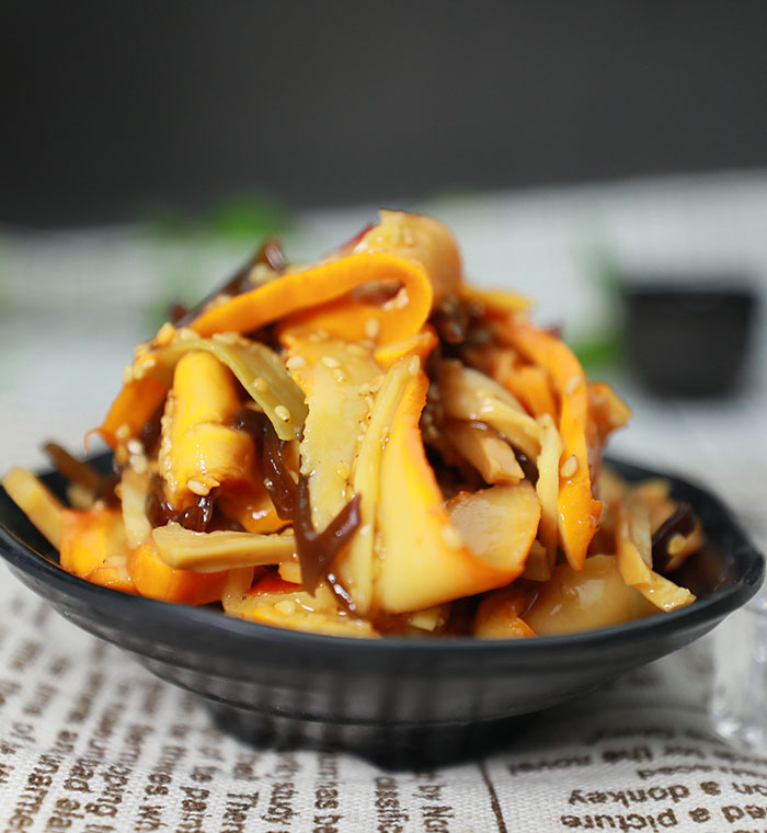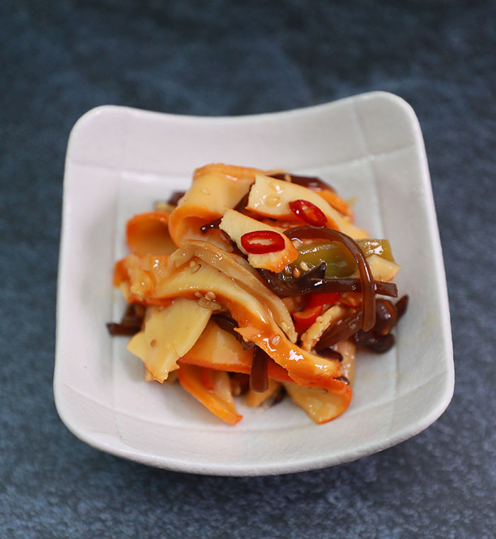 squid,yamakurage,bamboo,fungu,carrot,sesame seed