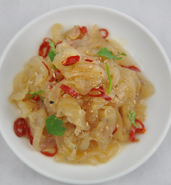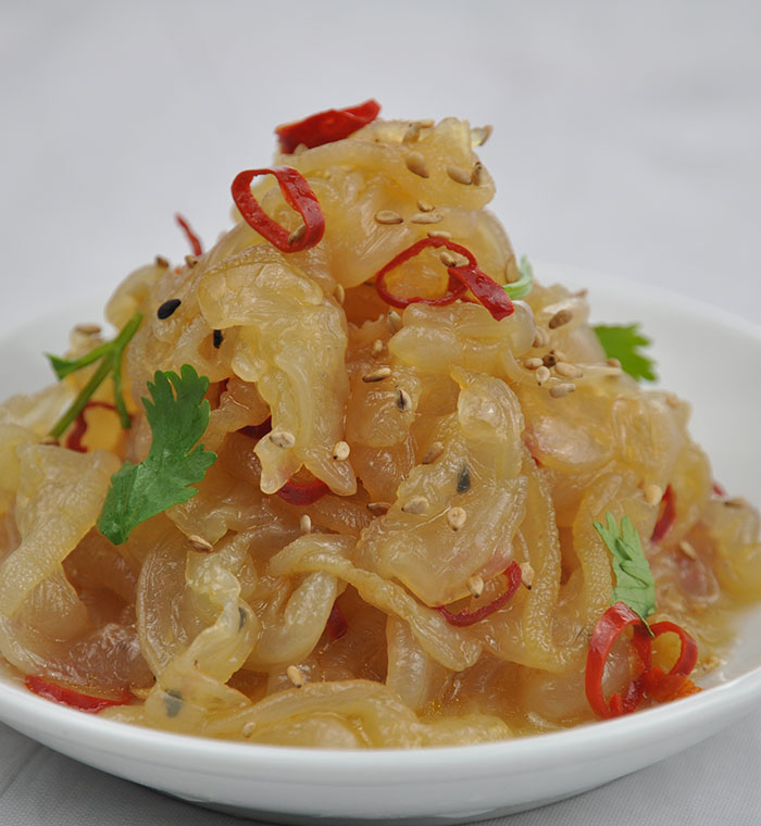 jellyfish,sugar,soy sauce,sesame oil,seasme seed