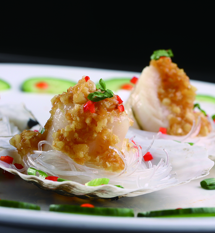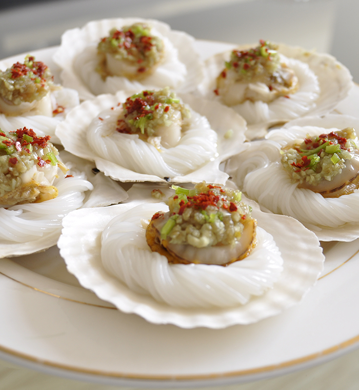 scallop,vermicelli,vegetable oil,garlic,chilli,caraway,sugar,salt